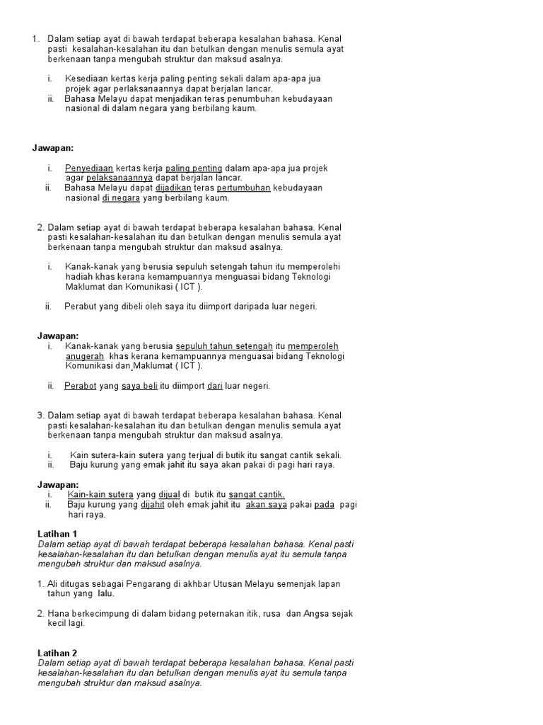 . Nota-Nota Tatabahasa dan Kesalahan Tatabahasa Bahasa Melayu K Contoh Karangan Pilihan Untuk Bahasa Melayu BM SPM Tingkatan 4 5. Latihan Tatabahasa Kata Nafi. KESALAHAN ISTILAH DAN TATABAHASA.